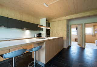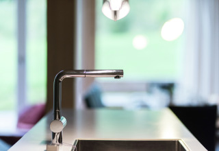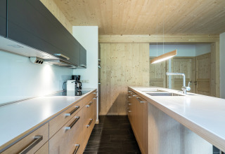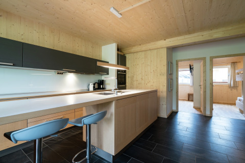 Hjertet i chaletet er det store opholds- og spiseområde. Slæng dig i de komfortable sofaer, sæt en film på fladskærms-tv’et, eller hyg jer bare sammen med en drink i hånden. Det åbne køkken er fuldt udstyret til madlavning med hele gruppen: keramisk kogeplade, ovn, opvaskemaskine, køleskab med fryser samt brødrister, elkedel og kaffemaskine. Et lille startsæt med opvasketabs, en svamp, rengøringsmidler og et viskestykke venter på dig, så du kan gå i gang med det samme.