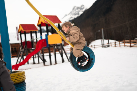 En meget velindrettet campingplads. Mange pladser til autocampere på 10 meter. Med mulighed for strømforsyning; 2 toiletter til rådighed for brugerne af disse pladser. Vi valgte komfortpakken, altså en plads med sanitære faciliteter (bruser, toilet, håndvask og vask), hvor man også kan tørre sit tøj, hvis det er nødvendigt. Meget rent, varmt vand garanteret, og der er varme i sanitetsbygningen. Pladserne er ret store, og der er strømstik uden for sanitetslokalet. Underlaget er af stabiliseret grus og jord. Swimmingpoolen er inkluderet i prisen for pladsen. Saunaen skal betales separat. Pizzeria ved siden af swimmingpoolen. Vi anbefaler skientusiaster at benytte shuttlebussen ved indgangen til campingpladsen for at komme ud på pisterne. Meget stort skisportsområde 20 minutter fra campingpladsen. Langrendsløbere kan starte direkte fra campingpladsen med ski på fødderne. Den nærliggende vej generer ikke ret meget, og hvad angår toget, skal man virkelig spidse ører for at høre det køre forbi. Byens klokketårn larmer mere ;))