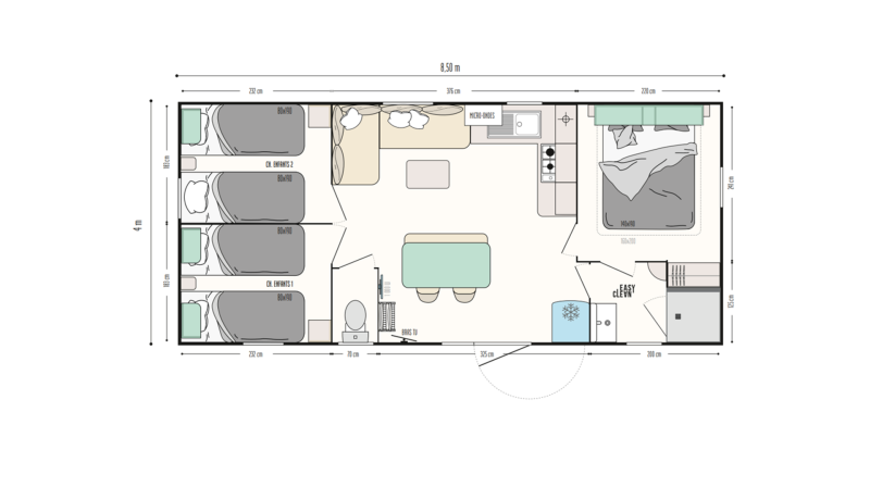 På denne feriepark finder du masser af plads til at nyde dine omgivelser og selskab i en afslappet atmosfære! Du bor i smukke boliger, der ligger langs snoede, grønne skovstier. Eller nyd en frisk croissant og kaffe på din terrasse med udsigt over dammen. På varme sommerdage kan du slappe af på sandstranden og tage en forfriskende dukkert i svømmedammen. Til de små er der et lavvandet, indhegnet område ved siden af legepladsen. Større børn vil hellere lave kolbøtter på hoppeborgen eller spille bordtennis og beachvolley på stranden. Voksne kan nyde et spil petanque eller slappe af med fiskeri i dammen. Ekstra underholdning for alle aldre tilbydes i sommermånederne.