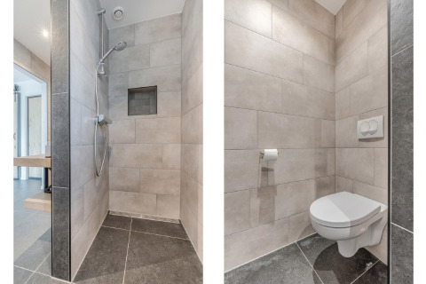 Med tre soveværelser og to badeværelser er der god plads til op til seks personer. Soveværelset på første sal har endda eget badeværelse, hvilket giver lidt ekstra privatliv og komfort til gruppen.