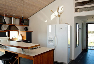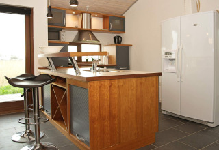 Huset har en smart indretning med soveværelser i begge ender af huset, så du får ekstra privatliv, selvom I er en større gruppe. I midten finder du den lyse stue og det åbne køkken/alrum – det perfekte sted til at lave mad sammen, spille spil eller bare slappe af med en drink.