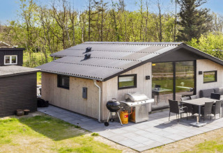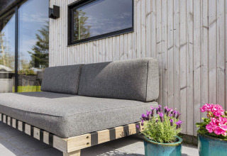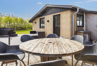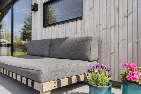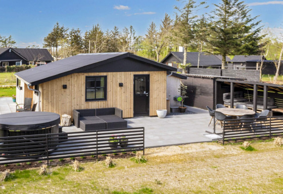 Huset er energieffektivt med varmepumpe, og der er mulighed for at oplade elbil, så det er et smart valg, hvis du rejser mere bæredygtigt. Et overdækket wellnesshjørne med bløde siddepladser fuldender billedet: det perfekte sted til lange snakke, en god bog eller en stille drink.