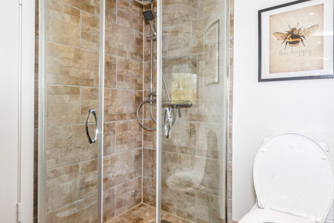 Hovedhuset har to stilfulde soveværelser, hver med en dobbeltseng af høj kvalitet – perfekt til par. I annekset finder du to enkeltsenge, ideelt for venner, der foretrækker at have deres eget område. Det lyse badeværelse har bruseniche, toilet og et komfortabelt badekar, så du nemt kan gøre opholdet til en wellness-weekend.