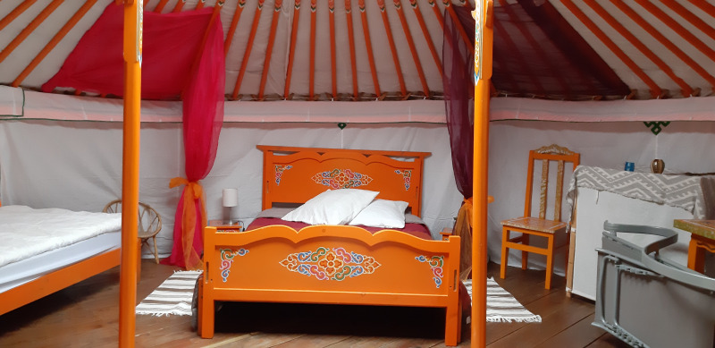 En rigtig favorit! ❤️ Vi elskede alt ved det: den utroligt varme velkomst fra værterne, de smukke omgivelser, den upåklagelige renlighed, den beroligende ro og kvaliteten af maden. Alt gik op i en højere enhed, så vi fik et ideelt ophold til at genoplade batterierne. Regionen er storslået, og der er masser af smukke vandreture og opdagelser at gøre ved at følge værternes gode råd. De to uger gik alt for hurtigt... Vores jurte, der var perfekt indrettet og smagfuldt dekoreret, gav os total komfort. En særlig bemærkning skal gå til Patapouf 🐾, som nød at svømme næsten hver dag - det er en sand fornøjelse, at hunde er velkomne! Vi tager af sted med nogle vidunderlige minder og kun ét ønske: at komme tilbage! - Emmanuel, Anouck & Patapouf