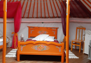 Joerten har ikke eget badeværelse; du benytter de fælles sanitære faciliteter på campingpladsen. Udendørs står der et picnicbord og liggestole til afslapning. Nogle yurts er traditionelt udført med håndmalet træværk, fåreuldsfilt og bomuld, andre har et moderne kanvas. De ligger i en rolig del af campingpladsen, med udsigt til de omkringliggende bjerge og med sydvendt retning.