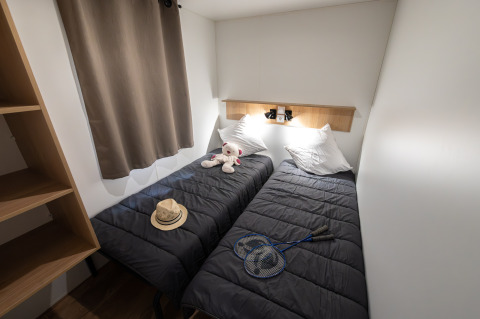 Stue med fuldt udstyret køkken (fuldt servise, gaskogeplader, mikrobølgeovn, køleskab med fryser, filterkaffemaskine, Nespresso-kaffemaskine, elkedel) og en spiseafdeling med bord, stole, sofa, tv, aircondition og opvaskemaskine. Der er tre soveværelser. Det første har en dobbeltseng (140 x 190), det andet og tredje har to enkeltsenge (80x190). Tæpper og puder er til stede. Madrasser og puder er beskyttet af et vandtæt betræk, som desinficeres mellem hvert ophold. Lagen er inkluderet ved ophold på 7 nætter eller mere. Der er et privat badeværelse med bruser og håndvask. Toilettet er separat.