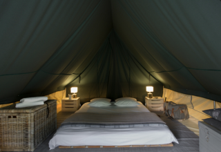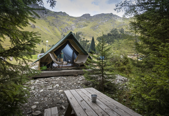 Nyd et enkelt, komfortabelt ophold højt oppe i bjergene. Hvad er skønnere end at vågne op efter en god nattesøvn til fuglesang og med en fantastisk udsigt over Vanoise-bjergene? Dette romantiske telt, bygget af træ, sejldug og siv med sans for detaljer, udgør et æstetisk og naturligt hele. Teltet har trægulv med en dobbeltseng 140x200, to små borde med lamper, opbevaringsplads og en sivkuffert. Det enkle køkken har en elektrisk køleboks, service, PrimaGrill-barbecue og et campingbord. Teltet har ikke eget badeværelse, men du kan benytte de sanitære faciliteter.