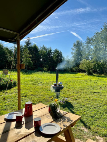 Ingen elektricitet? Det er det, der gør det ekstra specielt! Teltet er hyggeligt oplyst med olielamper og stearinlys, og madlavningen foregår på brændeovnen. Der ligger brænde klar til at gøre det dejligt varmt og hyggeligt. Har du mod på det?