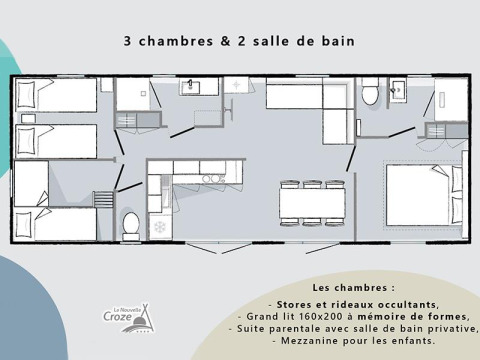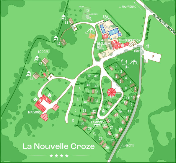 Oplev roen og den naturlige charme på Camping La Nouvelle Croze, en lille 4‑stjernet campingplads midt i den uspolerede grønne Vézère‑dal i Dordogne, beliggende mellem Sarlat og Périgueux. Nyd moderne glamping eco‑lodges, rummelige indkvarteringer og komfortable faciliteter, herunder swimmingpools, wellness og restaurant – ideelt til en afslappende familieferie. Oplev et børneparadis med masser af plads til leg, udforsk de smukke omgivelser og slap af på denne familiecampingplads, hvor kvalitet og natur er i centrum. Lad dig forføre af komfort og natur, skab uforglemmelige øjeblikke sammen og nyd din ferie fuldt ud i det smukke Périgord Noir.