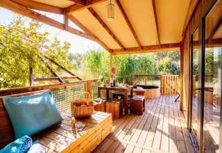 Denne komfortable hytte, kaldet “Oceania Lodge”, er en hyldest til fiskerhytterne ved vandet, udstyret med deres typiske fiskenet. En unik blanding af strandstemning, ro og førsteklasses glampingkomfort.
