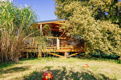 Nyd et usædvanligt ophold i en hyggelig kokon, en særlig indkvartering på pæle og drømmehytten til en familieferie i det sydlige Gironde. Forældrene kan slappe af i privat spaen på terrassen, mens børnene udforsker det afslappende net. En unik oplevelse venter med førsteklasses komfort.