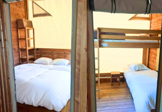 Oplev friluftslivet uden at gå på kompromis med komforten i Cotton Flower Canvas Lodge. Denne étplans glampingbolig på 28 m² ligger midt i naturen i Corrèze og er ideel for familier eller par. Med to soveværelser, eget badeværelse og en hyggelig stue med tv vil du straks føle dig hjemme. Udenfor inviterer den rummelige overdækkede terrasse på 16 m² til lange aftener i den friske luft. Stemningsfuld, komplet og helt i harmoni med omgivelserne.