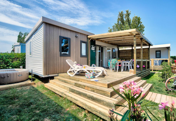 Home Flower Premium Jacuzzi er en komfortabel og fuldt udstyret bolig på 29 m², perfekt til en afslappende ferie for fire personer. Indenfor finder du to soveværelser: et med en dobbeltseng og et med to enkeltsenge. Den hyggelige stue er udstyret med tv, aircondition, en spiseplads og et opholdsområde. Køkkenet er fuldt udstyret med et 4-blus komfur, køleskab, opvaskemaskine, kaffemaskine og rindende varmt vand. Du har eget badeværelse, og sengetøj samt håndklæder er inkluderet.