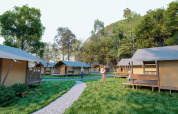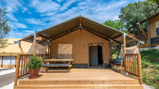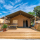 Denne glamping i Occitanien omfatter flere hytter, telte, hytter og mobilhomes i ferieparken.