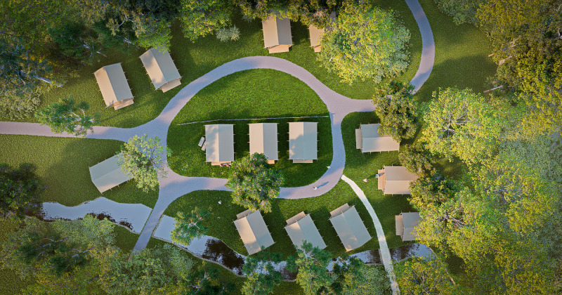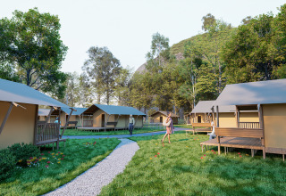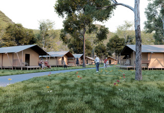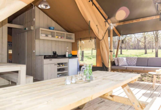 Oplev et uforglemmeligt ophold i de nye lodgetelte på 35 m², ideelt til komfort og plads midt i naturen. Det rummelige opholdsområde er udstyret med en hyggelig siddekrog, komplet køkken og rigelig opbevaringsplads. Slap af på den overdækkede veranda med komfortabel havemøbler, perfekt til morgenkaffen eller en aften under stjernerne. Tre soveværelser tilbyder plads til hele familien: et forældresoveværelse med dobbeltseng og et børneværelse med to solide køjesenge. Alt er designet for nemhed og ro, så hvert øjeblik af opholdet er bekymringsfrit. Plads, komfort og naturoplevelse mødes i dette lodgetelt, et ideelt valg for familier, der ønsker at tilbringe kvalitetstid sammen.