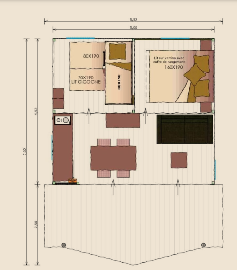 Den charmerende Ecolodge Cotton Confort på 32 m² byder på et komfortabelt ophold midt i naturen på Flower Camping L'Ile d'Offard i Saumur. Velegnet til op til 5 personer, med to soveværelser: tre enkeltsenge (80 x 190 cm) og en stor seng (160 x 200 cm). Lodgen er udstyret med badeværelse og toilet. For dem, der kan lide at lave mad udendørs, er en plancha tilgængelig som tilvalg. Det elegante og varme interiør omfatter en rummelig stue med tv til afslappende stunder. På den overdækkede panoramaterrasse på 11 m² kan du nyde den beroligende udsigt. Her kan du virkelig slappe af i hjertet af Loire-dalen.