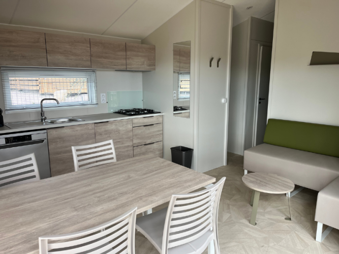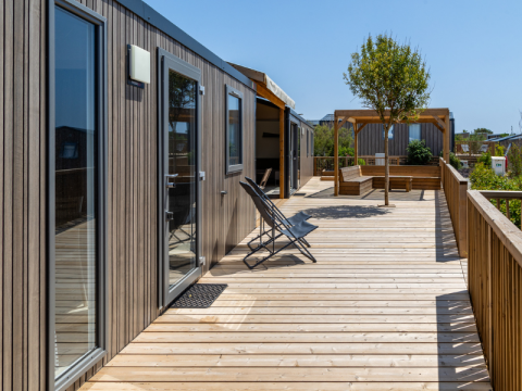 TRIBU stacaravans består af to sammenkoblede stacaravans og tilbyder masser af plads. Det samlede areal er 60 m². Den store, delvist overdækkede terrasse på 48 m² forbinder begge stacaravans. Rygning er ikke tilladt. Kæledyr er tilladt efter anmodning og på visse betingelser.