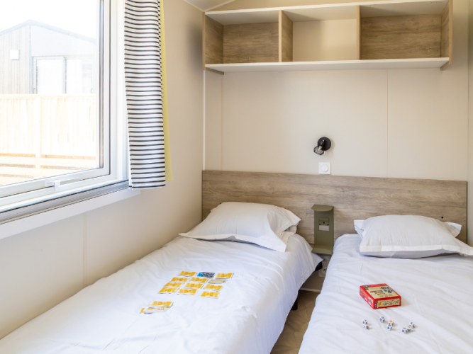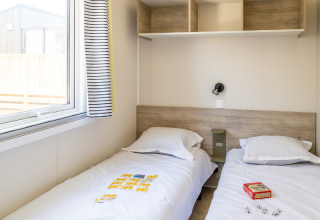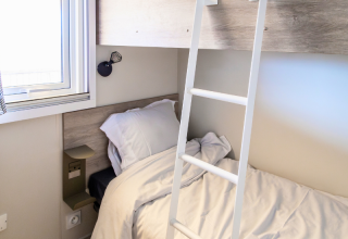 Der er i alt fem separate soveværelser. To soveværelser har hver to enkeltsenge på 80 x 190 cm. Ét soveværelse er indrettet med en køjeseng med to enkeltsenge på 80 x 190 cm. Derudover er der to soveværelser med hver en dobbeltseng på 140 x 190 cm.