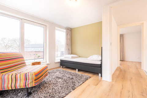 Oplev ro og plads i denne fritliggende seks-personers feriebolig i udkanten af en fredelig park på Hondsrug. Store vinduespartier fylder den hyggelige stue med lys og giver udsigt til de grønne omgivelser. Det fuldt udstyrede køkken med opvaskemaskine, kombiovn og både filterkaffe- og Nespresso-maskine gør det nemt at lave mad. Tre komfortable soveværelser giver plads til seks personer.