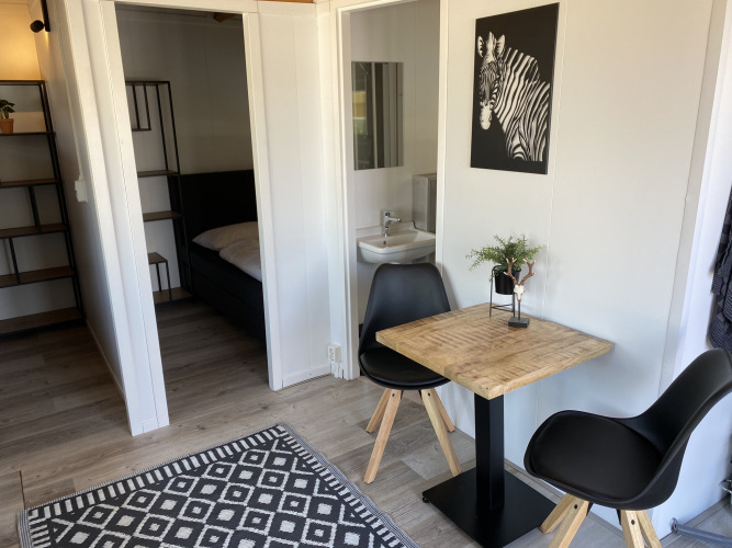 Al den luksus, du finder på en båd, kan du også finde i hytten. Du har adgang til en hyggelig stue, et privat badeværelse med bruser, toilet og håndvask, et kompakt åbent køkken med køleskab og en Senseo-kaffemaskine. Hytterne har 2 soveværelser. Der er et soveværelse med en dobbeltseng og et soveværelse med en køjeseng. I stuen er der en sovesofa med plads til 2 personer.