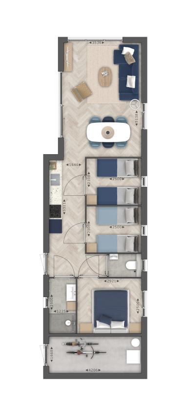 Vær opmærksom på, at dette er en helt ny parkfase, som til dels stadig er under opbygning. Selvom parken har forberedt driften med den største omhu, kan de (endnu) ikke garantere, at haverne vil stå i (fuldt) flor på tidspunktet for dit ophold. Af denne grund tilbydes denne hustype til en ekstra konkurrencedygtig pris. _