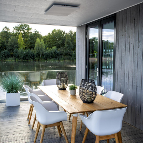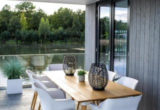 Water Cube DeLuxe er en unik design-lodge til 6 personer, som rækker hele 12 meter ud over vandet. Det føles som om, du svæver over vandet, med en panoramisk udsigt fra den rummelige, overdækkede terrasse. Det ideelle valg for familier eller vennegrupper, der ønsker at nyde luksus, natur og ro – med stil.