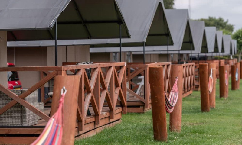 Beliggenheden er smuk, det er der ikke noget galt med. Du har en smuk udsigt. Desværre var vores ferie blevet et drama på grund af tyveri af lejede e-cykler. På grund af det kuperede landskab lejede vi elektriske e-cykler, og de var udenfor (låst) om aftenen / natten. Til vores overraskelse var cyklerne væk om morgenen. Vi spurgte naboerne, om de havde set noget, og de så en buldrende Volkswagen Caddy parkeret i nærheden af vores hytte. Det mærkelige ved denne campingplads er, at man kun kan komme ind på campingpladsen ved at scanne en QR-kode ved bommen. Den får man kun, hvis man er i parken. Det er umuligt at gå/cykle på grund af cyklernes tyngde og det kuperede landskab. Efter denne ubehagelige overraskelse gik vi direkte til receptionen og spurgte, om de måske kunne gennemse optagelserne, men vi hørte aldrig noget. Svaret var "hvor irriterende". Så pas godt på jeres cykler, for de bliver åbenbart bare stjålet her!