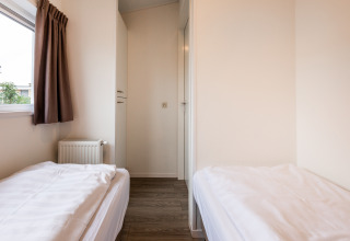 Dette feriehus til 2 til 4 personer på 50 m2 er fuldt udstyret. Hytten har to soveværelser (2*2 enkeltsenge), en rummelig og hyggelig stue og et åbent køkken med kombineret mikrobølgeovn, opvaskemaskine og nok plads til at sætte et lækkert måltid på bordet. Køkkenet er fuldt udstyret med bl.a. filterkaffemaskine, kedel og brødrister. Om sommeren holder aircondition huset køligt.