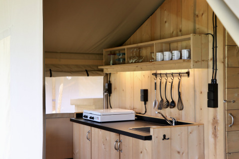Det smukt indrettede safaritelt er et luksussafaritelt med plads til op til 4 personer, en ideel indkvartering til en ferie med familien eller en gruppe! Det har et areal på 25 m2 og er udstyret med en rummelig terrasse med markise.