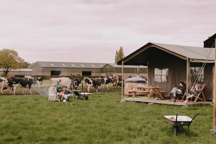 Feather Down De Oude Melkstal er en stemningsfuld, naturinkluderende malkegård, hvor det ægte bondeliv går hånd i hånd med komfortabel indkvartering. Du bor i rummelige safaritelte, hvoraf ét har et dejligt vildmarksbad, alle med udsigt over vidtstrakte enge. På gårdspladsen kan du nyde faciliteter som en gårdbutik med hjemmelavede produkter, en mælkedank, en legeplads og et hyggeligt bålsted. Køerne bliver stadig malket i hånden her, et særligt syn du kan opleve på tæt hold. Blandt dyrene, roen og det skønne udeliv er der altid noget at opleve. Uanset om du kommer for stilheden, naturen eller bondegårdsoplevelsen: denne glamping byder på varme, charme og ægte brabantisk gæstfrihed.