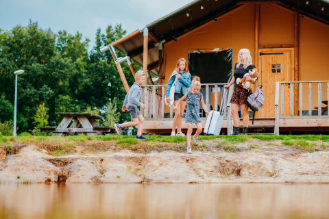 Glamping er den måde, luksuscamping skal være på. Dette luksussafaritelt ligger derfor ved vandet i legedammen. Det ideelle sted at nyde, lege og slappe af sammen. Luksussen afspejles også i safariteltet: sov i komfortable senge, lav mad i dit eget køkken og brug dine egne sanitære faciliteter i teltet! De luksuriøse safaritelte har en super beliggenhed, tæt på restauranten og børneklubben, men tættest på er legedammen! Stranden starter for foden af luksussafariteltene. Din ferie kan ikke starte bedre! Den ekstra store veranda byder på masser af afslappende sjov, en smuk udsigt over legedammen og en god start på dagen.