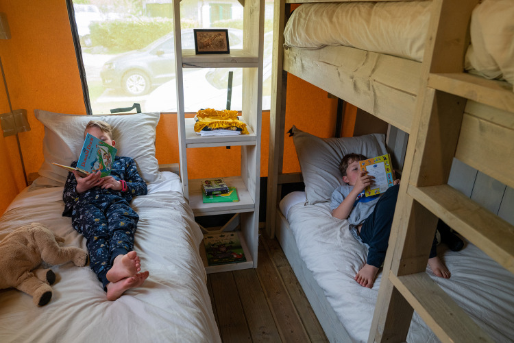 Vælg eventyr og komfort i den seje Rangerlodge, hvor udeliv og luksus går op i en højere enhed. Vågn op i en boxmadras, lad børnene klatre op til deres egen etage ved siden af lejenettet, eller vælg køjesengen med ekstra enkeltseng. Indenfor er der hyggeligt og praktisk indrettet, med et stort spisebord til lange spilleaftener og et køkken med opvaskemaskine, Senseo og køleskab med fryser. Efter en dag fuld af leg i lejeskoven eller deltagelse i animationsteamet, venter det rummelige badeværelse med regnbruser, toilet og håndvask. Lodgen byder ikke kun på komfort for hele familien, men også unikke elementer som børneværelset ovenpå og en varm, hyggelig atmosfære. Perfekt til familier, der søger lidt ekstra på deres campingferie.