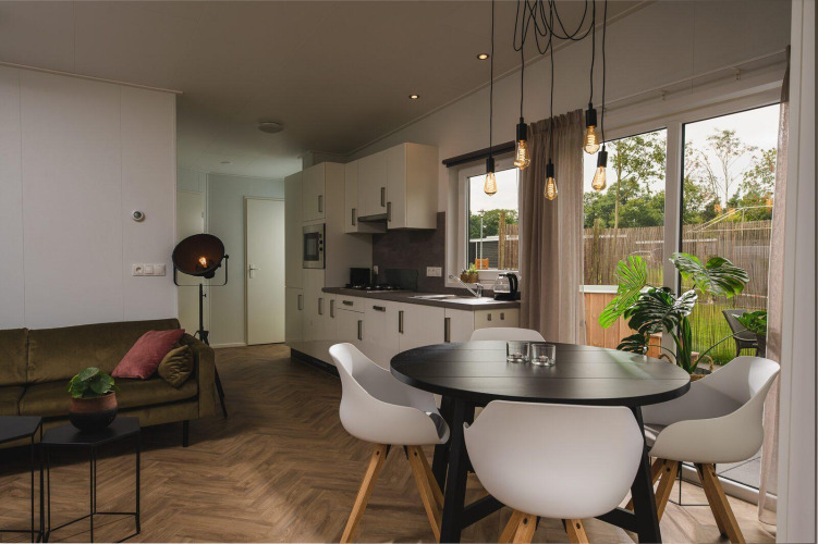 Heerlijk luxe huisje op een prachtige plek met heerlijk uitzicht! (Vanuit het bad en dutchtub!) De inrichting biedt een rustig zenn gevoel, de bank zit heerlijk! De stoel is ook ideaal. De keuken is van alle gemakken voorzien. Erg fijn. De welkomstpresentjes voelen echt als een warm welkom. Het uitzicht is prachtig. Ik denk dat het nog mooier is als straks alle bosjes zijn volgroeit, tussen de huisjes. Heb je meer privacy! Dat had je nu nog niet. Het park is in aanbouw, de huisjes zien er netjes uit. Al is het bij de nieuwe ingang even onduidelijk waar je heen moet. Heerlijk zo naast de sallandse heuvelrug, is echt prachtig. De wandelt/fiets er zo naar toe. Het is heerlijk rustig (even de bouwmachines weglaten) en de hoort de vogels tjirpen. De douche is heerlijk groot, de sauna makkelijk in gebruik en prima formaat. De bedden liggen lekker, je merkt al wel een "ligspoor" en het bed is wat smal. Dat kleed erop is fijn. Genoeg warmtebronnen om het huisje een lekkere aangename temperatuur te krijgen. De hoeveelheid hout bij het huisje is echt heel fijn! Dit scheelt veel zorgen of je t water wel op tijd warm krijgt, voordat je hout op is. Mooi aangelegd huisje. Ben benieuwd hoe het er over een paar jaar uit ziet alles alle planten etc. zijn volgroeit! Heerlijk natuur huisje. De schuifbare hofdeuren zijn ideaal! Zowel bij lekker weer, als savonds om het huisje voor t slapen gaan af te koelen!