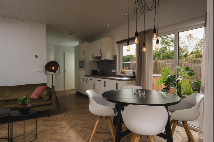 Nyd en wellness-panoramahytte med fritstående badekar, traditionel finsk sauna og brusekabine. Og alt det i en stemningsfuld hytte, hvor du vågner op om morgenen med udsigt over Twentes enge. Du har en terrasse på to sider. Foran din hytte og bagved den, med ekstra privatliv. Saunaen, badekarret og brusekabinen og en dejlig boxspring. Det er et billede. I dit soveværelse kan du tage et dejligt bad, nyde en traditionel finsk sauna og hoppe lige ind under brusekabinen! Det er sjældent, man ser et så cool soveværelse! Både sommer og vinter er behagelige i Wellness Panaroma Lodge. Den rummelige stue har et køkken med al mulig luksus. Der er opvaskemaskine, mikroovn, og du kan lave mad på et komfur med 4 blus. Der er en dejlig relax-sofa, hvor man kan slappe af efter en aktiv vandre- eller cykeldag på Holterberg eller efter en afslappende stund i saunaen.
