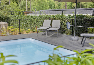 Slap af i en unik 10-personers lodge på De Thijmse Berg, hvor luksus og komfort mødes. Nyd den stilfulde hovedbolig med et master bedroom med eget badeværelse, to børnevenlige soveværelser og en lys opholdsstue med fuldt udstyret køkken-alrum. Træd udenfor og tag en dukkert i den opvarmede private dipping pool på 30 °C, sikkert indhegnet og perfekt til lange sommerdage. Det splinternye guesthouse i haven tilbyder ekstra privatliv med to soveværelser og eget badeværelse – ideelt for familie eller venner. Med tre badeværelser, aircondition, en rummelig terrasse med loungesæt og to private parkeringspladser er dette det perfekte sted at slappe af sammen. Et eksklusivt ophold, der giver det lille ekstra, midt i naturen og alligevel tæt på alle faciliteter.