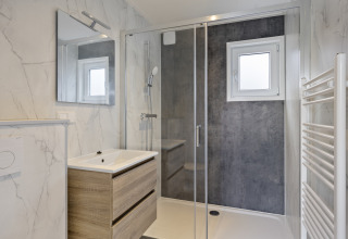 Vi havde et Heuvelrug-hus til 6 personer. Et fantastisk hus med en fantastisk beliggenhed i parken. (Nummer 166). Det var meget rent. Sengene var redt ved ankomsten. Der var håndklæder og badekåber med tøfler (til de voksne). Og der var et par små overraskelser: brusesæt, lille shampoo, opvaskemiddel, viskestykke og klud, lille drikkevarepakke (kaffekapsler, sukker, mælkepulver, te til at prøve). At køre ind ved bommen og åbne og lukke hoveddøren via app fungerede problemfrit. Kontakten via WhatsApp gik også glat, og spørgsmål blev besvaret hurtigt (på tysk/engelsk). Vi var fire, der rejste, og værelset med køjesengen er virkelig lille, men det var helt tilstrækkeligt for os. (køjeseng). Vi havde også et soveværelse med to enkeltsenge og et soveværelse med en dobbeltseng. Der var et lille eller større klædeskab i hvert værelse. Badeværelset var meget moderne. Køkkenet havde også alt, hvad vi havde brug for i seks dage. Kun teskeerne var meget små, og der kunne godt have været lidt mere bestik. Ellers var alt i orden. Kan varmt anbefale parken (du kan komme til Amsterdam, Efteling eller Utrecht relativt hurtigt). Der er stille og roligt, og beliggenheden med direkte adgang til skoven er rigtig god.