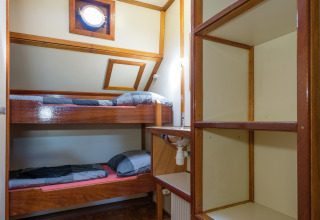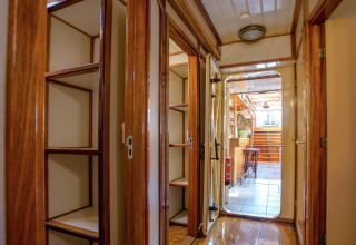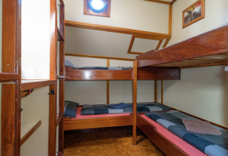Båden har 10 enkle, men komfortable kahytter, hver med køjesenge og egen håndvask, så alle får lidt privatliv. Med 3 brusere og 4 toiletter slipper du for at stå i kø hele morgenen. Centralvarme holder det varmt og hyggeligt, så du er behageligt tilpas i alle årstider.