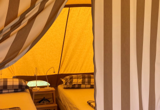 Oplev luksus-glamping fra €85 pr. nat, og nyd campinglivet uden at gå på kompromis med komforten. De fuldt udstyrede Karsten-telte har plads til 4 personer med to soveområder, et rummeligt opholdsområde og et fortelt, hvor man kan sidde i fred og ro. Sengene føles som hjemme, komplet med madrasser, sommerdyner og natborde. Udenfor venter en terrasse med pergola, liggestole og et komplet udekøkken til madlavning under solen. Hvert telt har eget badeværelse en kort gåtur væk eller kemisk toilet i teltet (ekstraudstyr). Denne glampingplads ligger langs en olivenlund med over 150 m² pr. plads og en smuk udsigt og er en ideel blanding af natur, privatliv og bekvemmelighed. Mulighed for et ekstra telt til større selskaber.