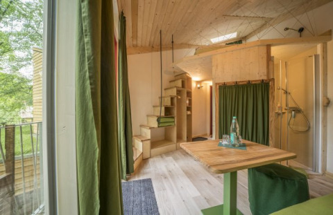 Oplev den særlige følelse af at bo blandt trætoppene: BIO-træhuslandsbyen gør det muligt! Træhusene er moderne, gennemsigtige og udstyret med en soveplads under stjernerne og tilbyder alt, hvad der skal til for at få et uforglemmeligt ophold: hyggelige dobbeltværelser, tilgængelige suiter, brusebad, balkoner og adgang til elevator. Nyd din morgenkaffe på den rummelige balkon, eller bliv bare liggende i sengen et stykke tid; det er sådan, din grønne ferie starter perfekt.