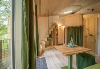 Træhussuiterne er smart indrettet: et soveværelse med en komfortabel dobbeltseng, en stue med sofa og bord, to køjesenge, en stor balkon og et rummeligt, tilgængeligt badeværelse. Suiterne er kørestolsvenlige og også tilgængelige med elevator. Selv i de små områder er der masser af plads i BIO-træhytterne: en sofa, et lille arbejdsbord og et hyggeligt brusebad. Nogle mindre hytter har franske balkoner eller skjulte udsigtspunkter. Om natten kan du sove under tagvinduet og nyde udsigten til trækronerne og stjernerne.