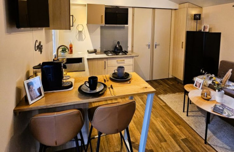 Neptunes mobilhome tilbyder de ideelle rammer for et afslappende og komfortabelt ophold midt i naturen. I soveværelset finder du en komfortabel dobbeltseng, mens opholds- og spiseområdet i stuen kan omdannes til en ekstra sovesofa, hvis det er nødvendigt. Køkkenet er fuldt udstyret med et stort køle-fryseskab, gaskomfur, emhætte, køkkenredskaber, bestik og porcelæn. En Nespresso-kaffemaskine sikrer en perfekt start på dagen. Der er et badeværelse med bruser og et separat toilet.