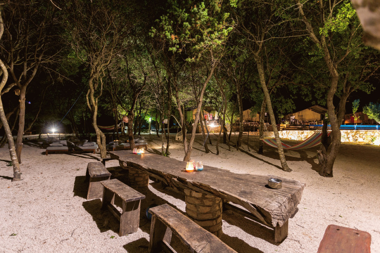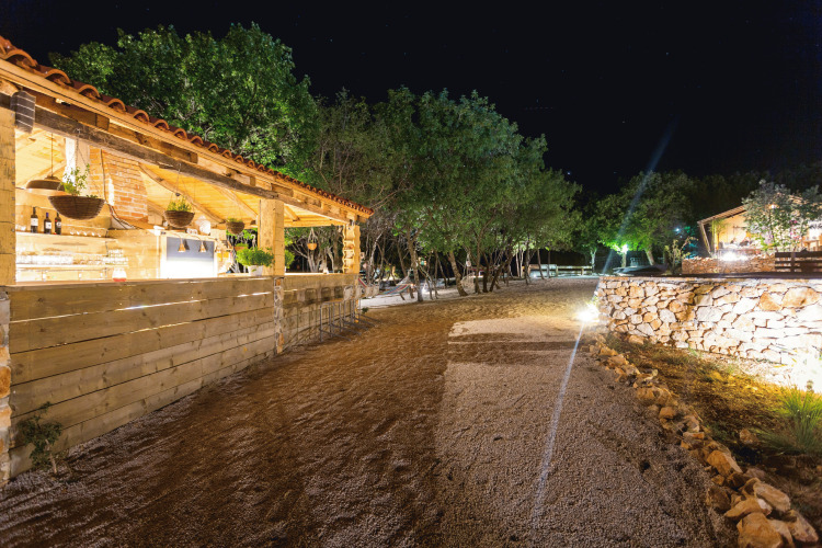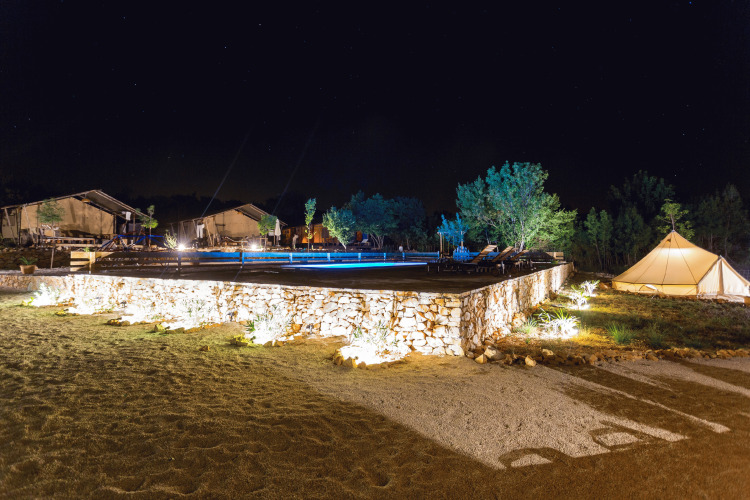 Faciliteter Du vil kunne nyde din ferie i ro og mag her. Den lille, luksuriøse campingplads har plads til maksimalt 10 familier. Teltene er strategisk placeret omkring poolen, hvor du finder en bar med grill og et loungeområde under træerne. Nono Ban tilbyder alt, du har brug for: plads til at opdage Kroatiens fred og ro i fuld frihed, mens børnene har det fantastisk. I højsæsonen arrangeres der regelmæssigt forskellige aktiviteter, såsom fælles BBQ eller et besøg hos den lokale bonde. For de aktive er der mulighed for at prøve klatring eller havkajak i morgentimerne.
