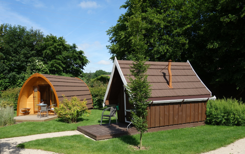 De komfortable lodges og pods tilbyder meget komfort på lidt plads. Lodgerne imponerer især med deres markise, som supplerer den rummelige terrasse.