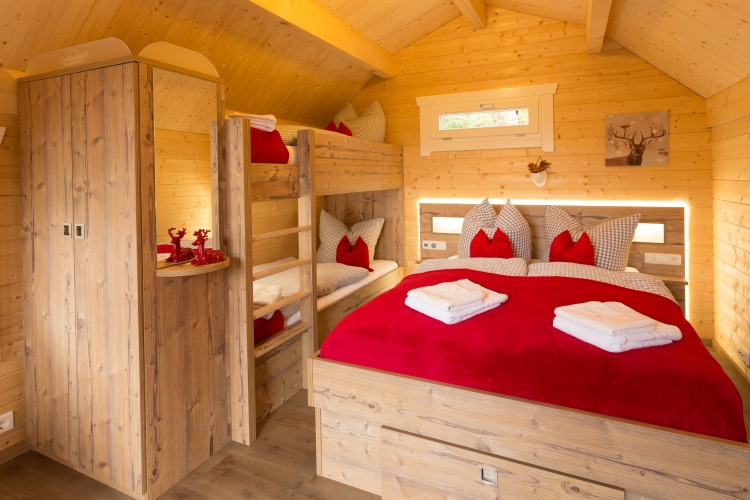 Hytterne på Campingpark Wiesenbeker Teich er indrettet i en elegant landhusstil og er velegnede til op til 4 personer. Indendørs er der en dobbeltseng og en køjeseng, et tv med dvd-afspiller, en radio, en minibar, en kaffemaskine inklusiv kaffe/te, et håndklædetørrer og infrarød opvarmning til de kolde dage. Glamping-indkvarteringen har også en privat terrasse med havemøbler, udendørs pejs og grill. Fælles badefaciliteter med toiletter, brusere med varmt vand, hårtørrere og sæbe-/håndklæde dispensere findes ved hytterne.