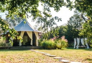 Udstyret med antikke møbler, naturlige stoffer og særlige fund fra rejser skaber de en tidløs charme, der giver følelsen af at bo i et raffineret tilflugtssted midt i det grønne. Hvert telt har et rummeligt soveområde med kingsize-seng og sengetøj af høj kvalitet, et privat badeværelse med bruser og et hyggeligt opholdsområde med unikke møbler og håndlavede detaljer. En privat have inviterer dig til at nyde parken i fred. Aircondition og varme sikrer perfekt komfort året rundt, mens en minibar holder drikkevarer kølige og giver plads til små godbidder. Udvalgte toiletartikler, te og urtete samt kærligt ekstraudstyr bidrager til dit velbefindende. Takket være Wi-Fi-forbindelsen kan du holde forbindelsen uden at miste atmosfæren af afsondrethed.