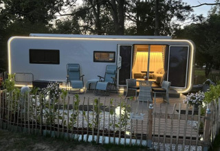 En lidt anderledes ferie: I den permanente Caravan DREAMER kan du nyde komfortabel glamping i en stilfuld hems på hjul. Soveværelset har en stor boxspring-seng og satellit-tv, mens stuen med hyggeligt siddeområde, satellit-tv, gulvvarme og en king-size boxspring-seng giver ekstra opholdskomfort.