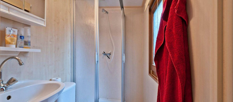 Mobilhomet er velegnet til op til fire personer. Der er et hovedsoveværelse med en dobbeltseng og et børneværelse med to enkeltsenge. Der er et rummeligt tekøkken. I stuen er der et hyggeligt siddehjørne med bord og tv. Badeværelset har bruser og toilet. En varmeovn gør dit ophold altid behageligt. På terrassen kan du nyde mange timer i solen. En plantegning af mobilhomet finder du i galleriet.