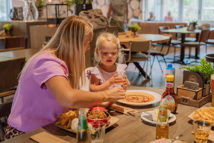 De ægte hesteentusiaster kan besøge den hyggelige pony rideskole, hvor børn får en uforglemmelig tid med ponyridning og pleje. Børneklubben sørger også for underholdning, med et kreativt animationsprogram og en krea-klub fyldt med sjove aktiviteter. Større børn og teenagere keder sig heller ikke her – i den seje, underjordiske Chill Out kan de more sig i timevis med poolbord, bordtennis, bordfodbold, dart, spillekonsoller og tv-skærme. Efter en dag fuld af eventyr kan du nyde lækre pommes frites og hollandske burgere på Kwalitaria. Vil du hellere have maden med? Der er også mulighed for take-away eller for at nyde en god kop kaffe med udsigt til både den indendørs legeplads og det overdækkede badeland. Om morgenen starter du dagen godt med friskbagt brød fra parkens supermarked, hvor du også kan købe alle dine dagligvarer.