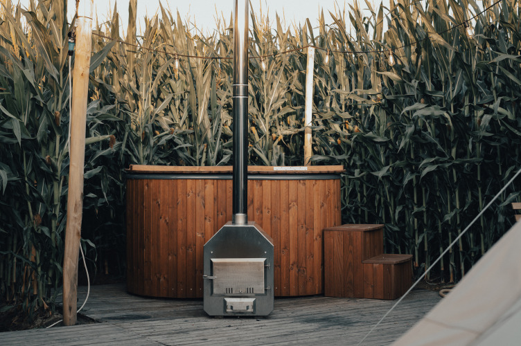 Disse glampingtelte i Belgien finder du midt i naturen, mellem majsmarkerne. Hos Glamping La Ferme står fire skønne, fuldt udstyrede glampingtelte. Hvert telt er egnet til to personer, indeni er der en dobbeltseng med natborde, og der er elektricitet. Det bedste ved disse glampingtelte er måske, at hvert telt har sin egen private brændefyrede hottub! Her kan du nyde afslapning i det fri, uanset om du sidder i solen eller under stjernerne – i hottubben slapper du virkelig af. Vil du køle ned? Så kan du benytte den private isbruser, herligt forfriskende og kølende om sommeren!