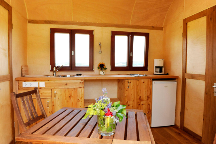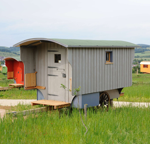 Overnat i en af de hyggelige sigøjnervogne — ideelt til par eller familier. Disse charmerende boliger er fuldt udstyret og smagfuldt afsluttet med træ. Afhængigt af typen er der plads til fra to og op til seks personer i sigøjnervognen. Nogle sigøjnervogne har eget lille køkken og rindende vand, afhængig af typen. Alle vogne har el og opvarmning — og hunde er også velkomne til at overnatte. De sanitære faciliteter ligger i gåafstand. Du kan også overnatte i en tipi eller en stor yurt. Begge har plads til op til fire personer. Yurten er indrettet helt i nomadestil og har hverken isolering eller opvarmning. Et ekstra varmt tæppe og en varmedunk gør også de køligere nætter rare. De håndlavede tipier, inspireret af tipierne fra indianerne i Missouri, er ligeledes stemningsfulde og unikke. De komfortable senge og varme tæpper sikrer en god nats søvn. Tipien har heller ikke opvarmning eller isolering, men et ekstra tæppe eller en sovepose og en varmedunk hjælper dig med at holde varmen. Tipien og yurten har et lille tekøkken med køkkenudstyr, men kun yurten har faciliteter til madlavning.